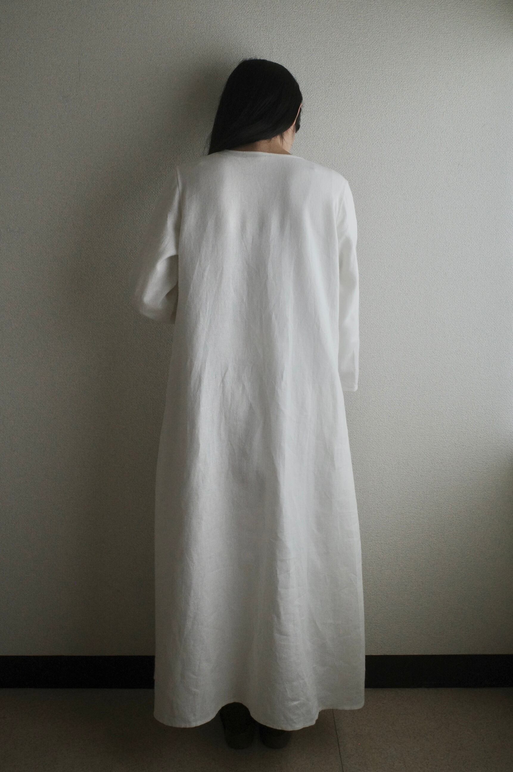 冬場はアウターの下に着るワンピースとして、春秋の季節には一枚で着たり、前を開けて羽織として着ることができます。