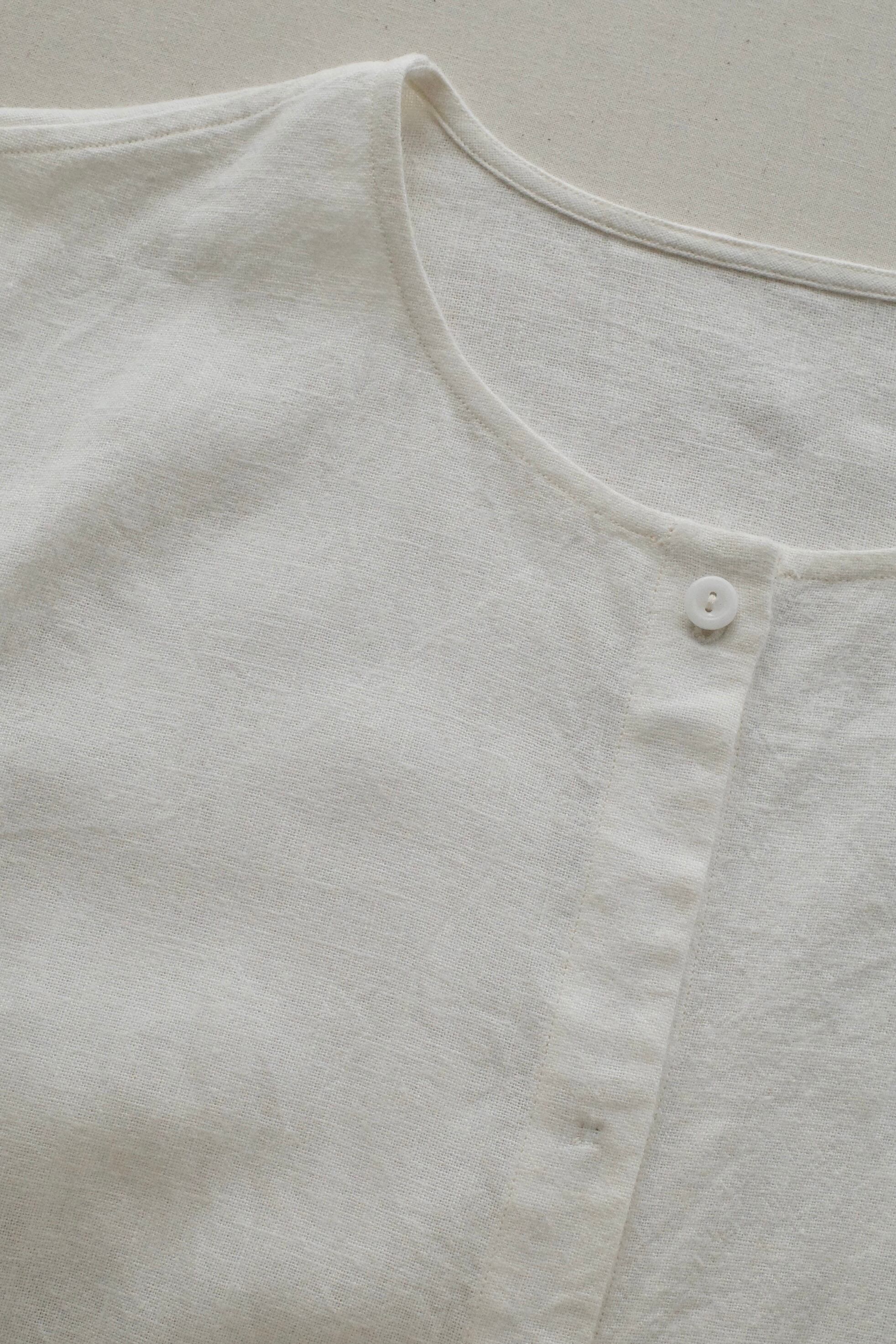 上見頃・袖周りは作業のしやすいようにすっきりとさせ、裾はやや長めの丈でふんわりとしたシルエットに。