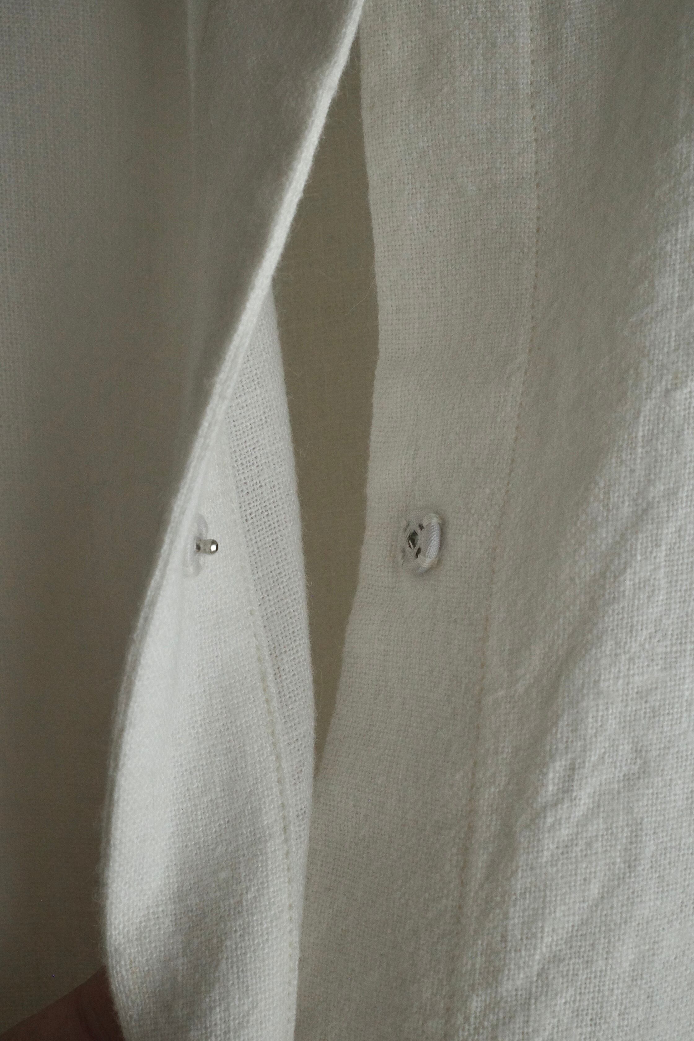 首元に古いガラスボタン、その他はスナップボタンボタンが付いており、前開きにもなります。