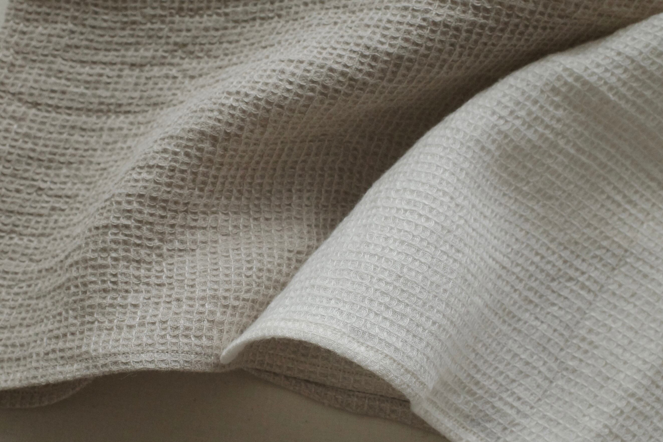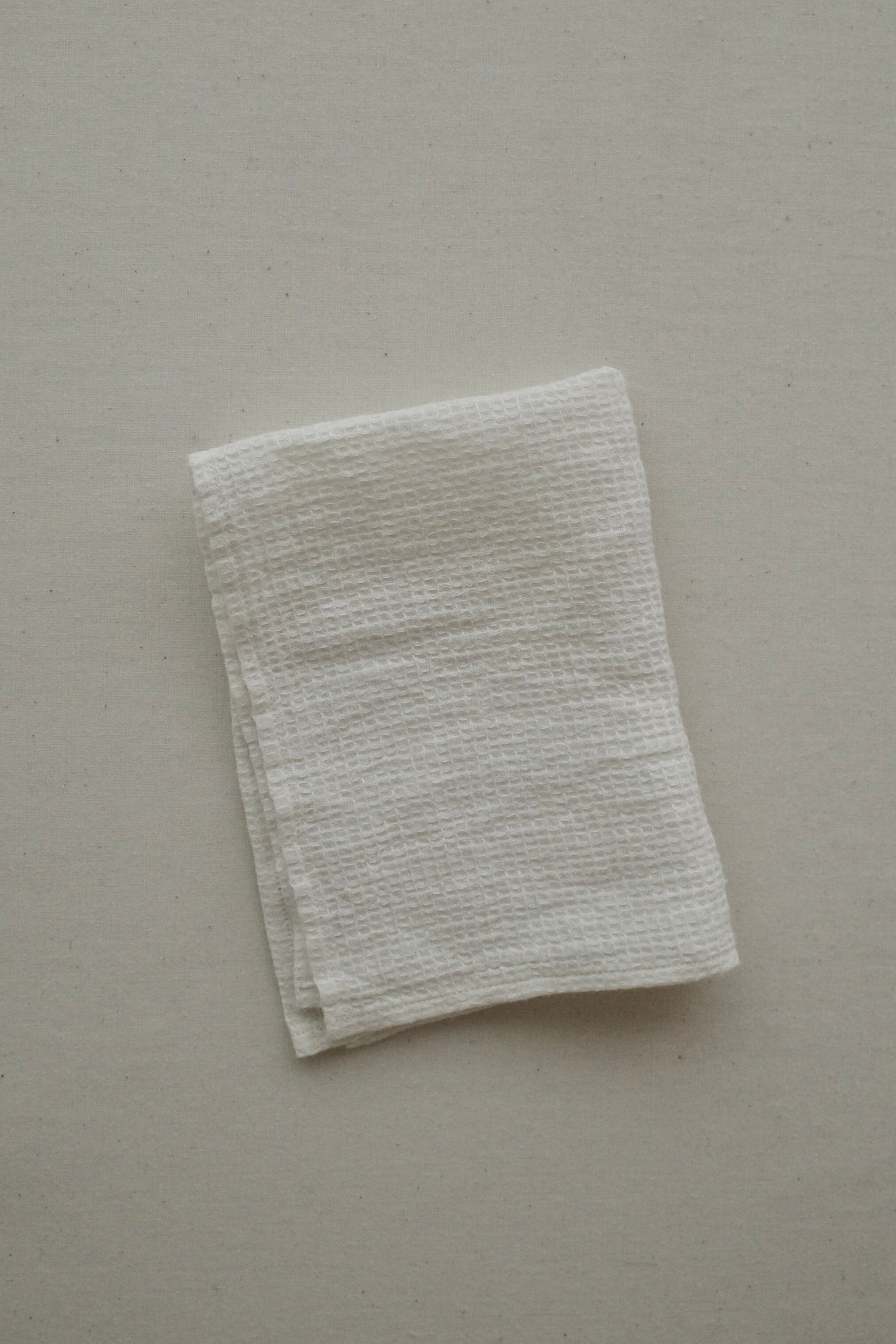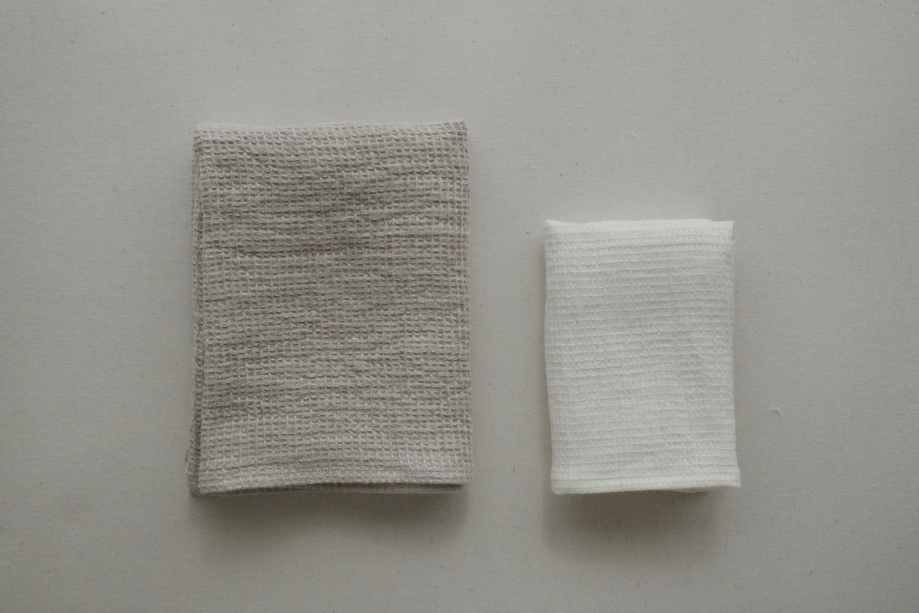 小さな目のリネンのワッフル生地で、やわらかなハンドタオルです。