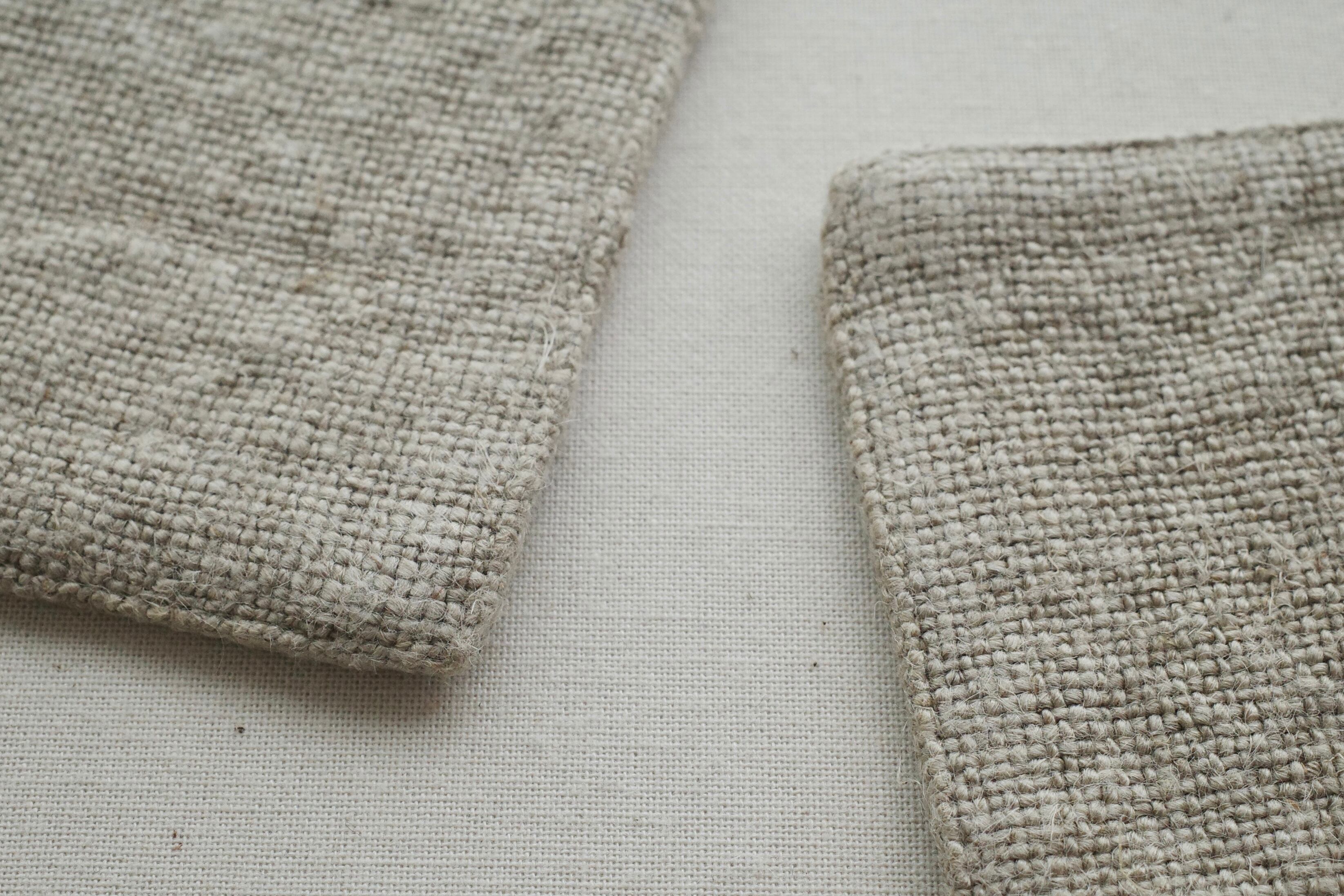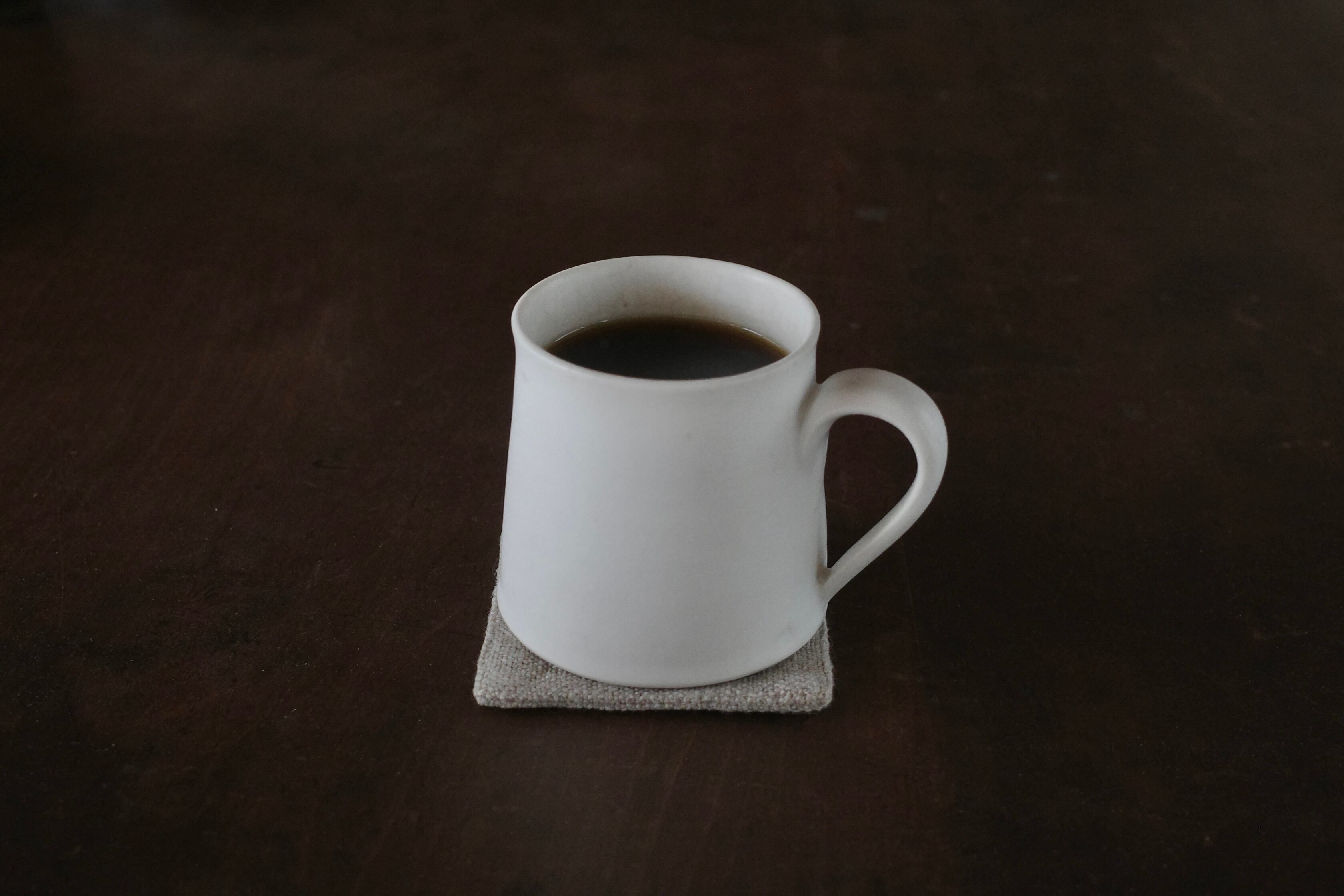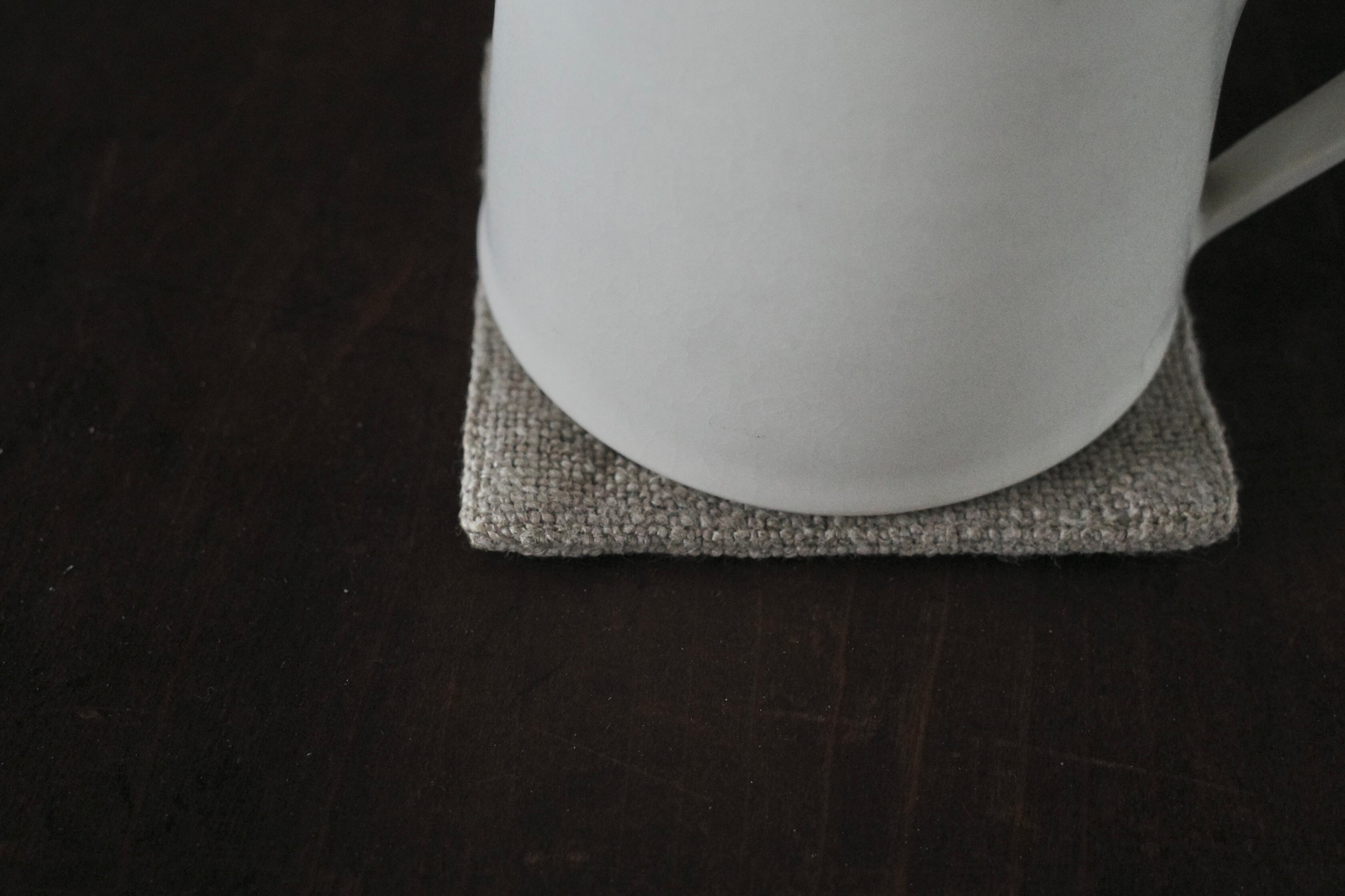 厚手でやわらかなリネン生地で、小さなカップに丁度良い大きさの敷物として作りました。