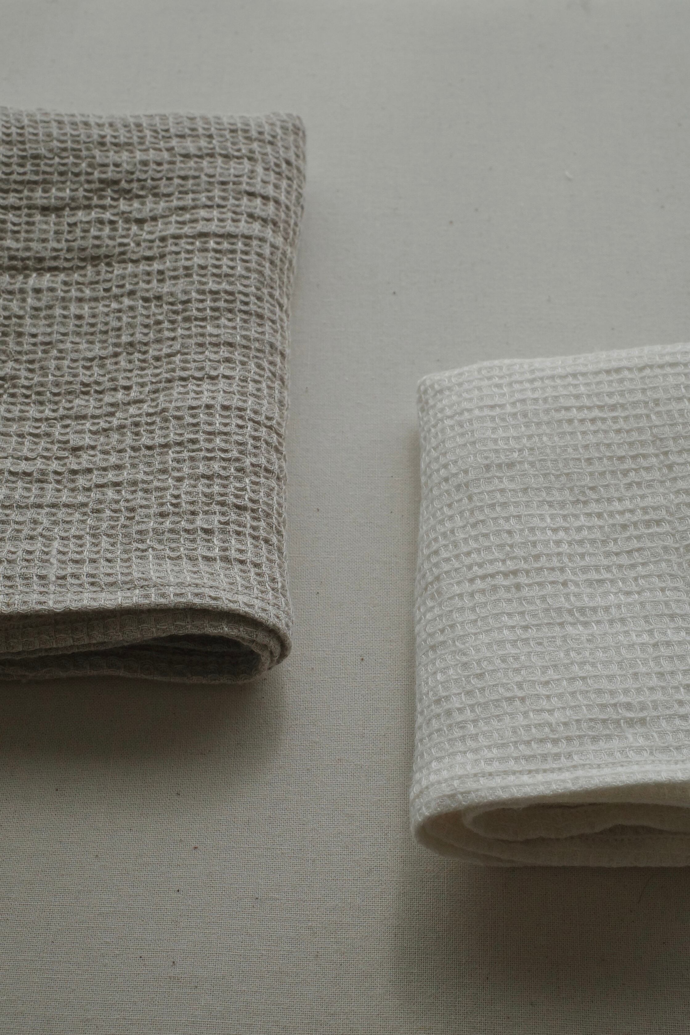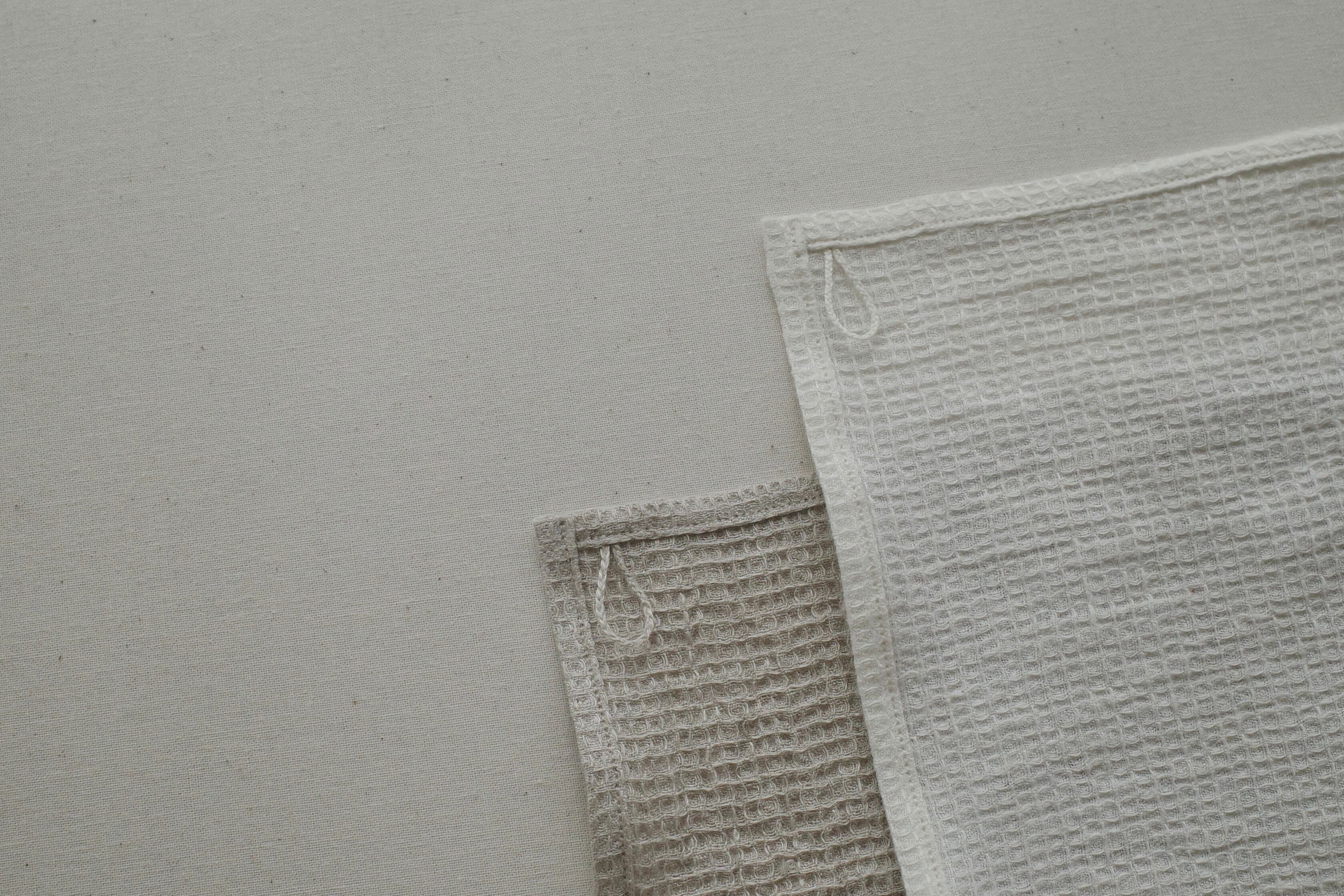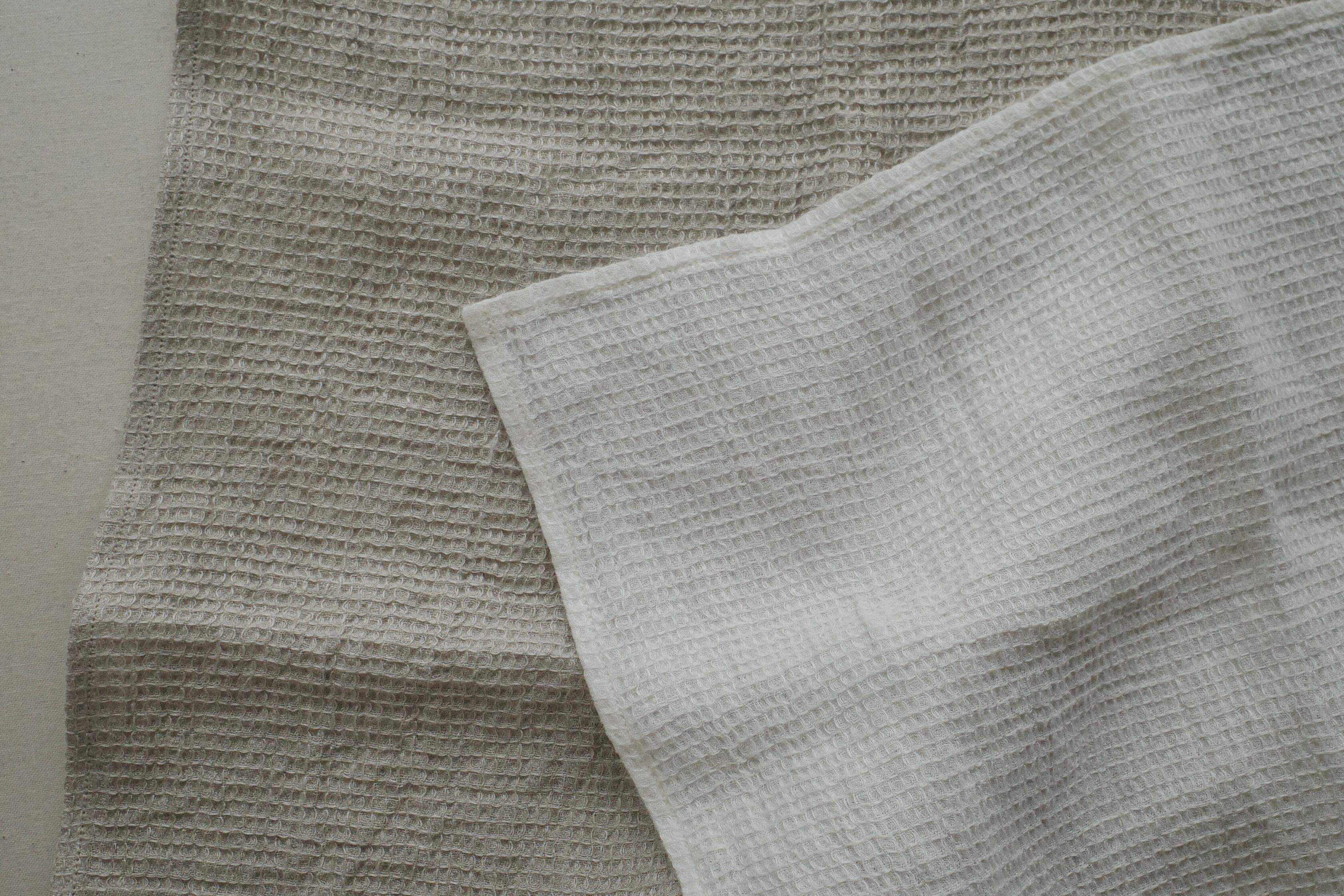 色は生成色で、汚れが目立ちにくく乾きも早いので台所でお使いいただくのもおすすめです。